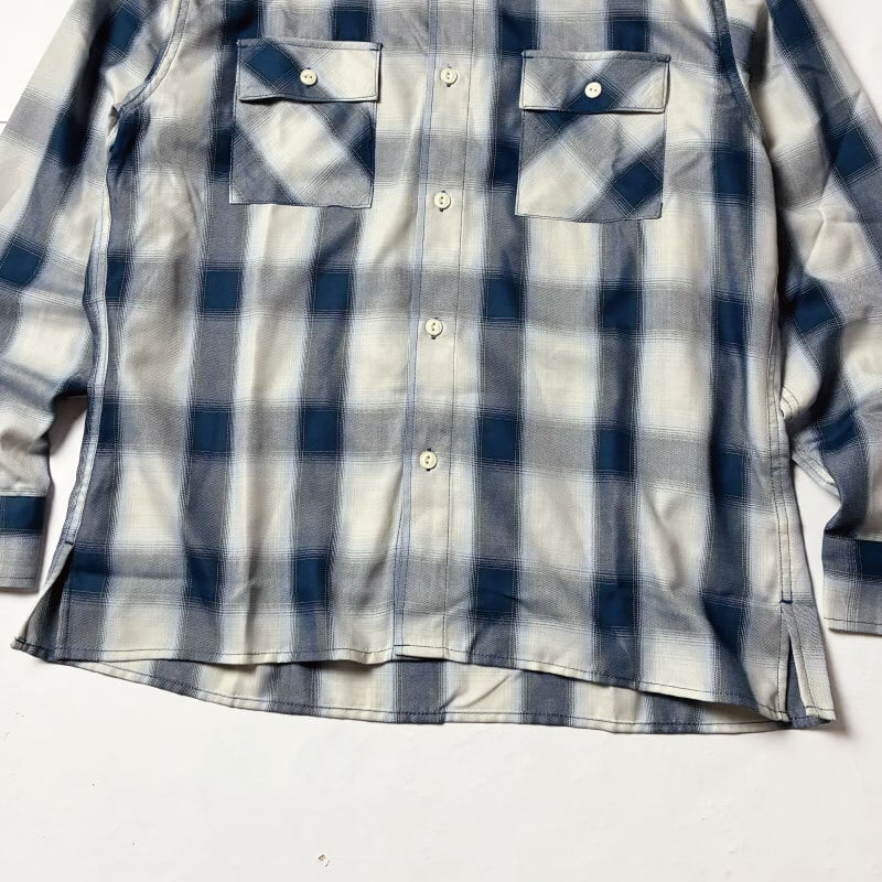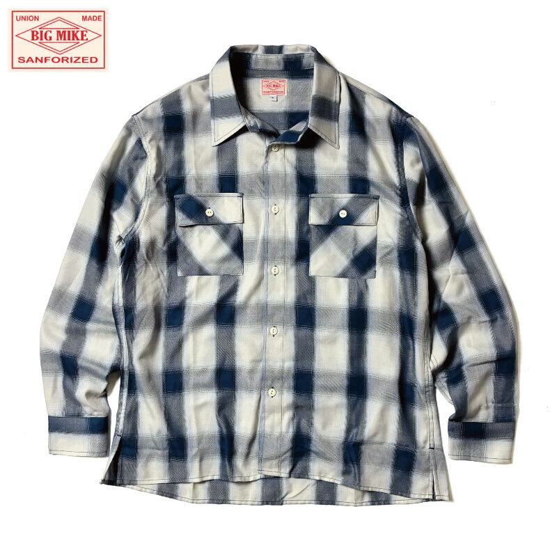 BIGMIKE ビッグマイク オンブレチェックシャツ 白青 ホワイト/ブルー 長袖 レーヨン混 オンブレチェック シャドーチェック US アメリカ ワークブランド