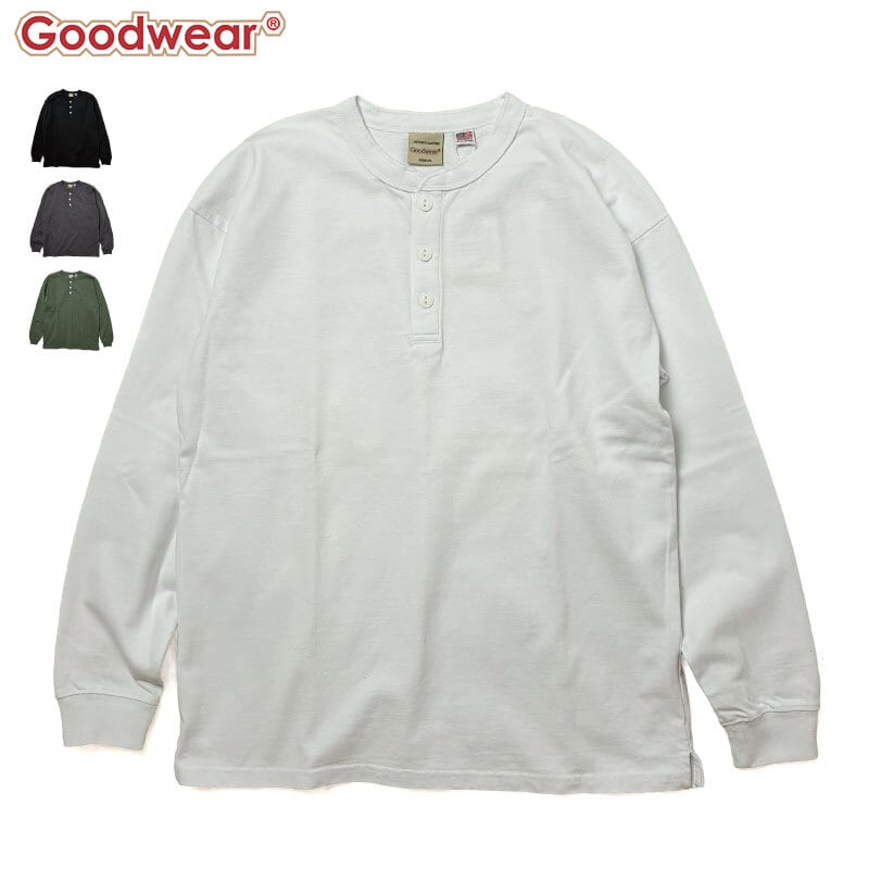 Goodwear グッドウェア ヘンリーネックTシャツ 長袖 ロンT USAコットン ヘビーウェイト