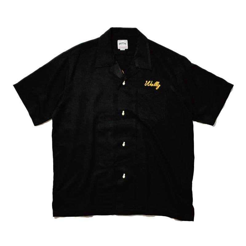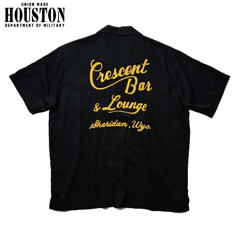 HOUSTON ヒューストン ボーリングシャツ ボウリングシャツ レーヨンオープンカラーシャツ 半袖 チェーンステッチ刺繍 ブラック 黒