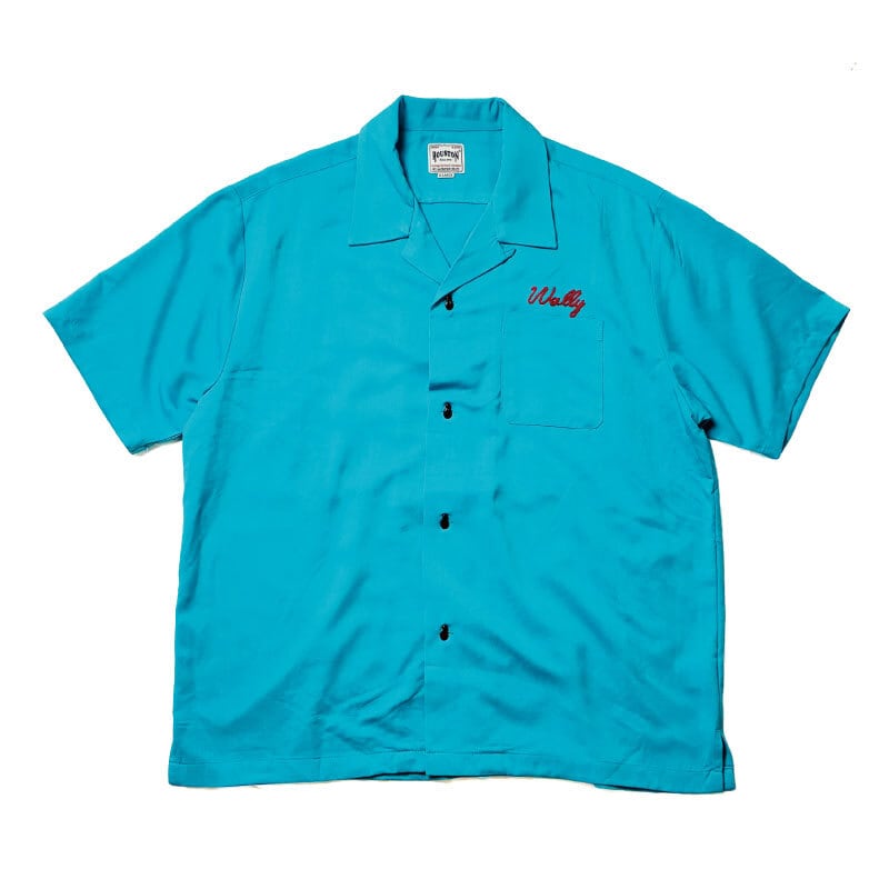 HOUSTON ヒューストン ボーリングシャツ ボウリングシャツ レーヨンオープンカラーシャツ 半袖 チェーンステッチ刺繍 ターコイズ ブルー