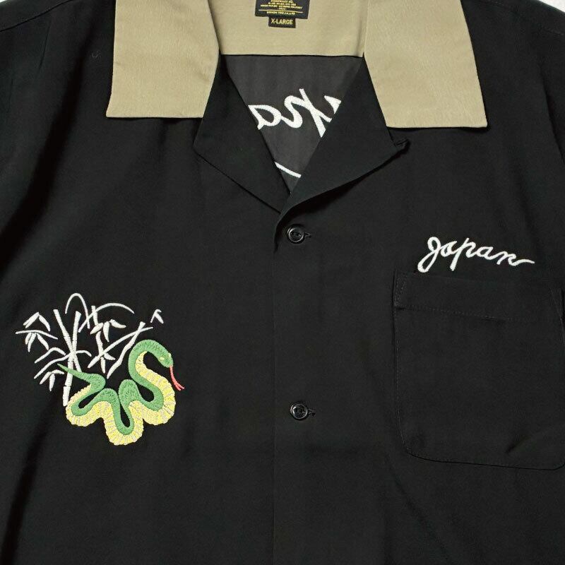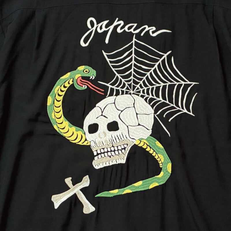 HOUSTONのスカル&スネーク刺繍オープンシャツ。