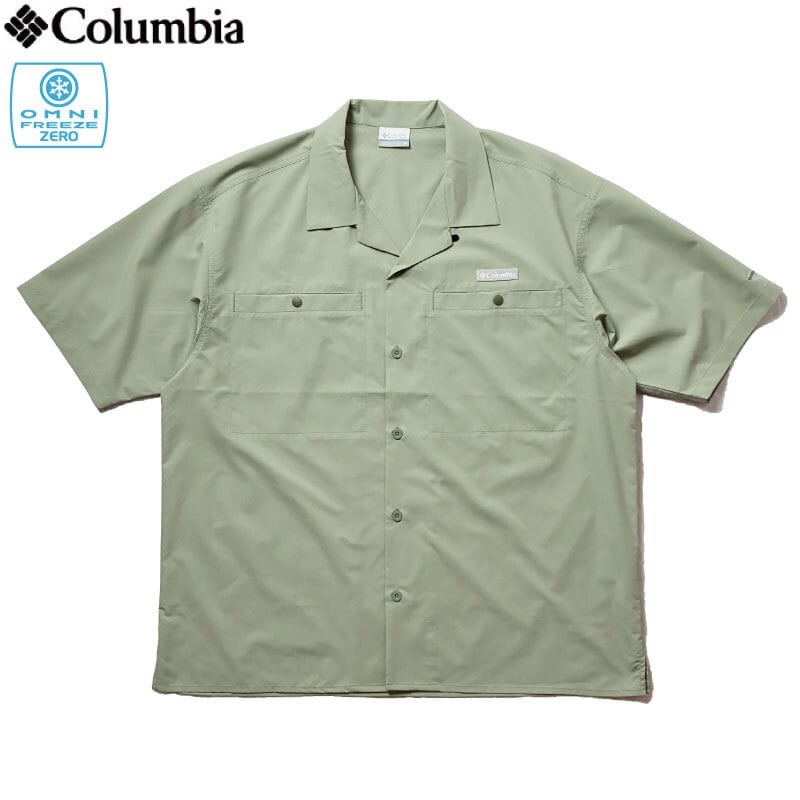 Columbia コロンビア 冷感 冷却 オムニフリーズゼロ 半袖オープンカラーシャツ ミントグリーン